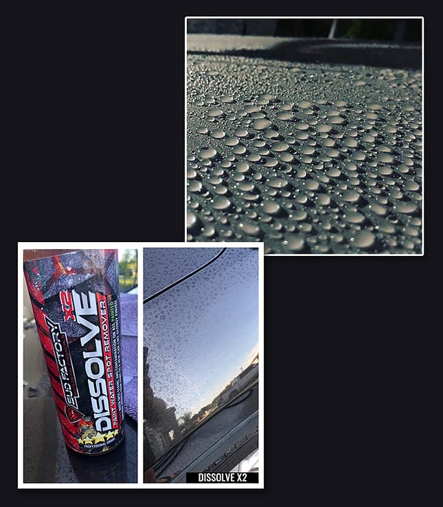 Dissolve X2 – Destroy water spots, stains, and contamination on all car painted surfaces. Removes excess wax, brake dust, fallout and more for a fresh clean slate